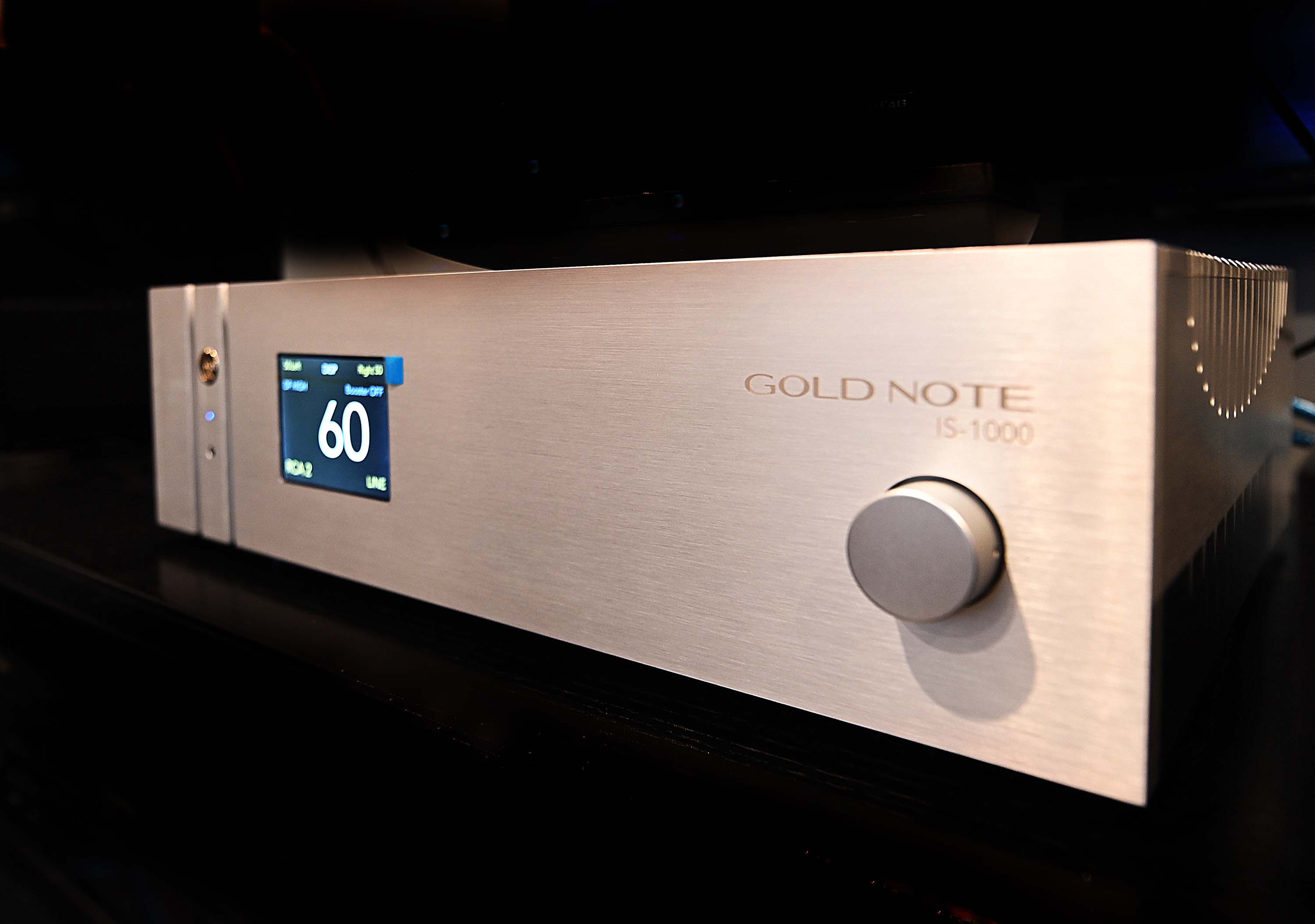 In the first floor sound room, we had the ATC SCM 19 bookshelf speakers on stands demoing the Geer-Fab D.Box SACD Player-to-DAC HDMI/DOP interface. This magic box can extract DSD64 and PCM 24/192k from the HDMI data of a player/transport with HDMI output. Don’t give your SACD’s away just yet! Since Oppo stopped making their universal player, this is one of the only ways to get Audiophile SACD sound these days. The system also included the Gold Note DS-10 DAC/Preamp/Streamer. The DS-10 is the latest generation of DAC using the brand new AKM AK4493 chip with PCM resolution up to 768kHz/32-bit and DSD up to DSD512. In addition to converting the audio signal, it is also capable of sending it directly to a power amplifier. This makes it very versatile analog line preamp. It is also the latest generation streamer with a high-performance headphone amp that features two sensitivity levels to drive any type of headphone. The muscle behind this high tech front end is the Goldnote IS-1000 integrated and streamer box. This is a 125 watts/ch box. Way cool.