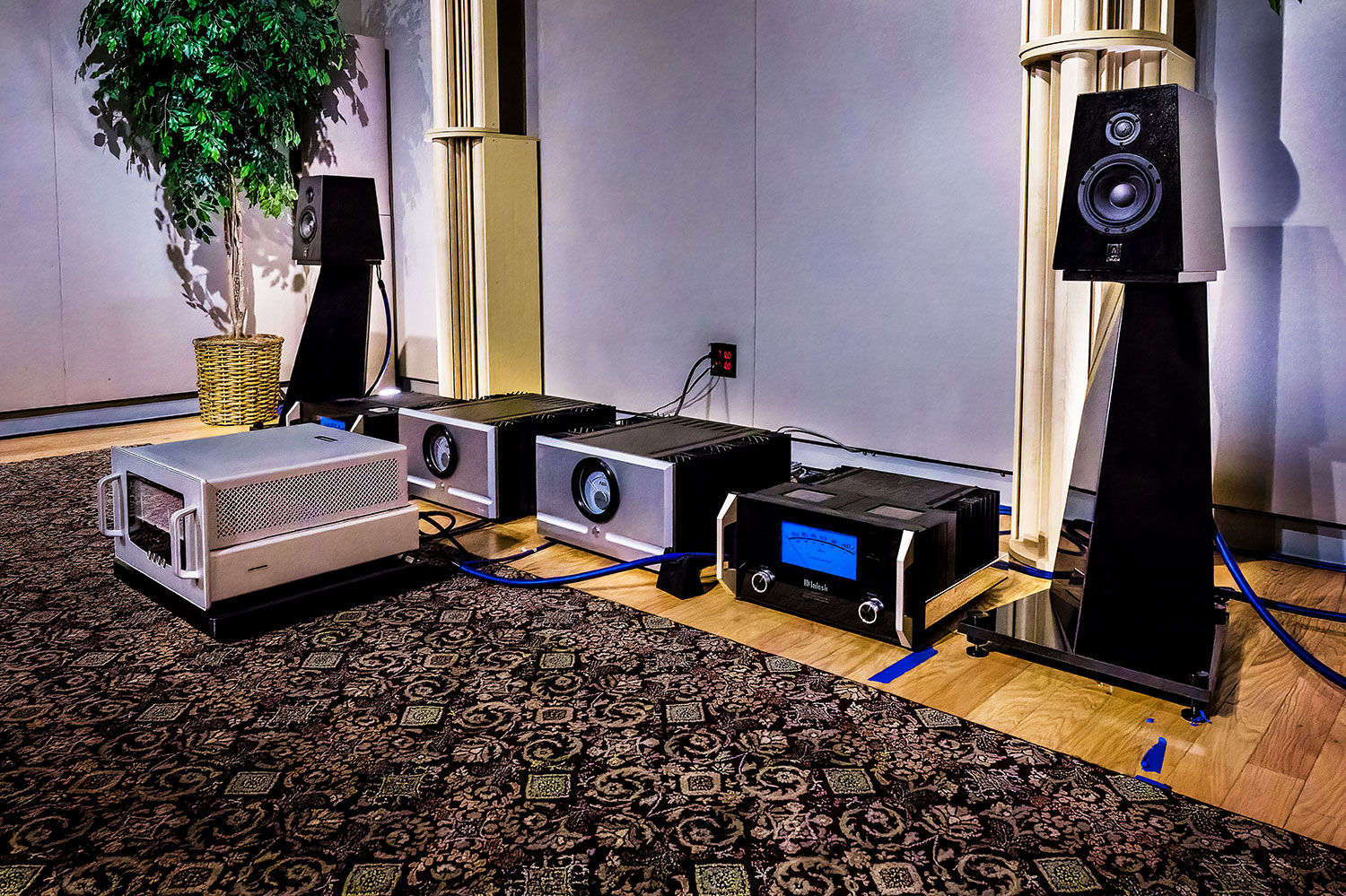 In the number two large room was the Acora SRB 2-way stand mount powered by the Audio Research Reference 160 S Stereo power amp. Every time I have heard these speakers, I am just astonished by the big sound from these little boxes. They are made from granite and weigh almost sixty pounds each. With an average efficiency of around 86 dB, they need some power to plumb the lower notes.