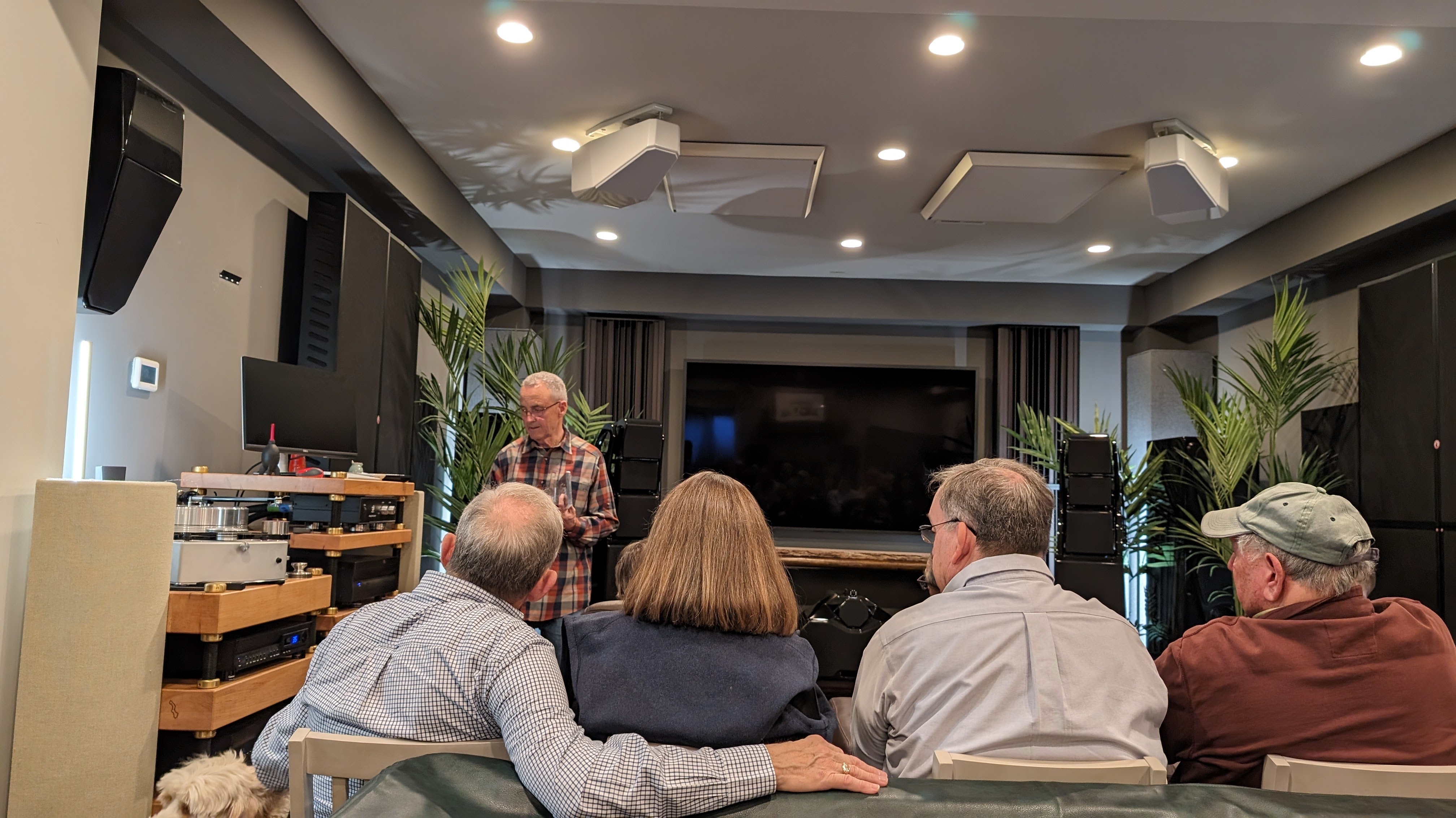 The meeting took place at DCHFG Gerry’s home with his dedicated multimedia system featuring top tier audio components and a recently installed ninety eight inch OLED TV.