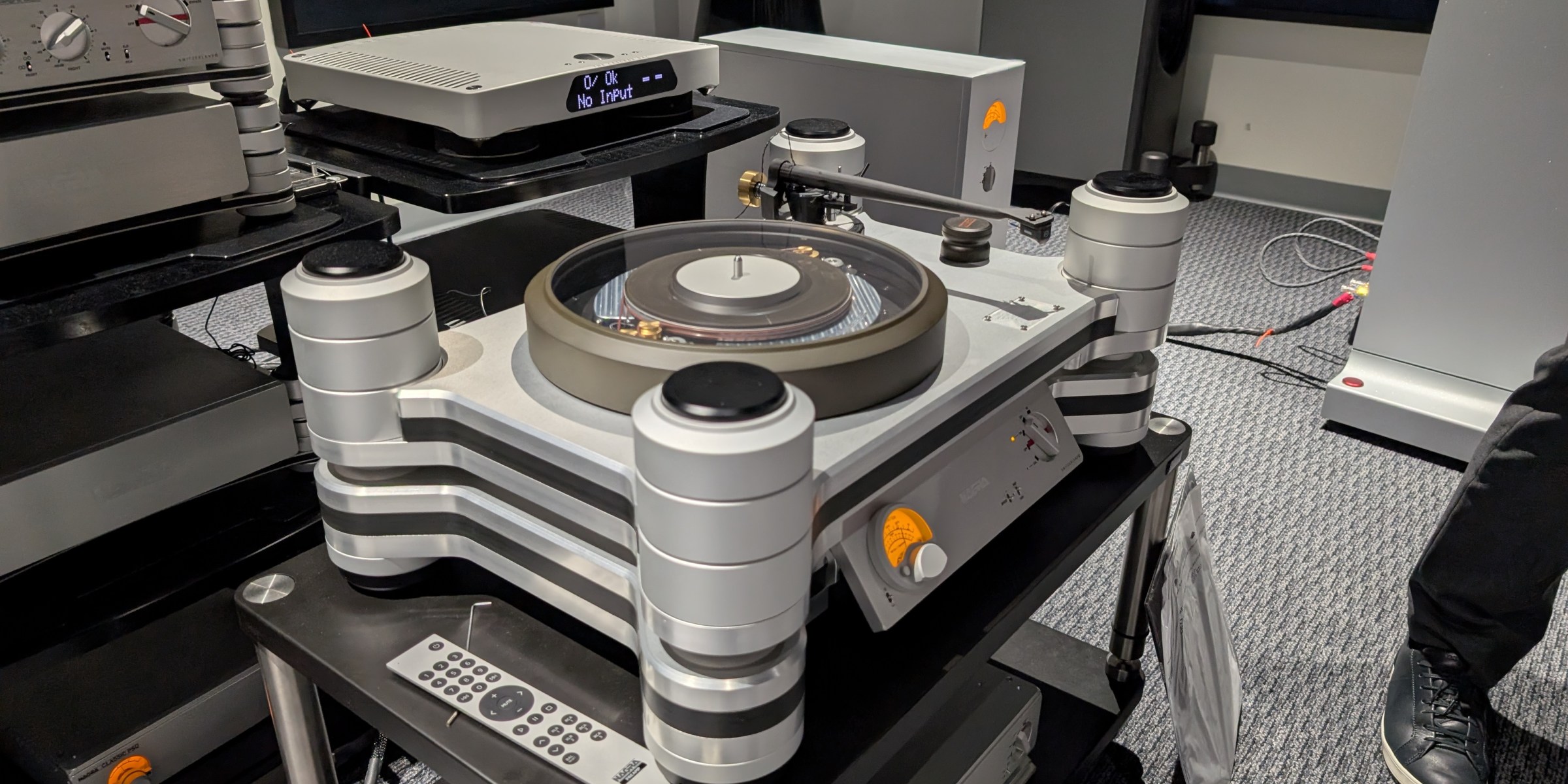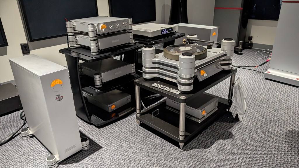 The event featured a presentation by Nagra representative and renowned mastering engineer René Laflamme. A demo of the impressive NAGRA Reference Anniversary Turntable with EMT Cartridge was the showcase. Mr. Laflamme Played some of his 100% analog recordings from his 2xHD label.