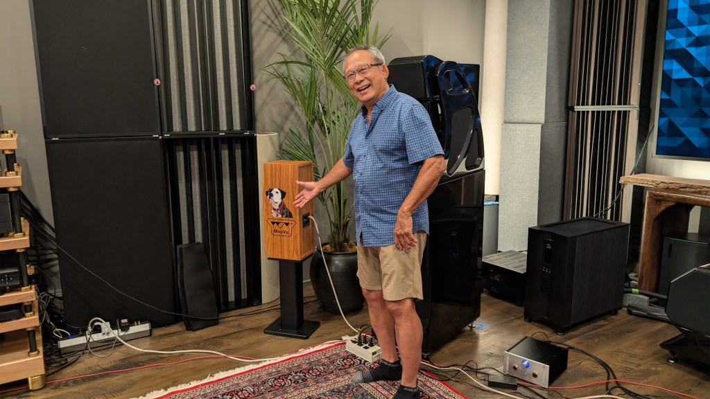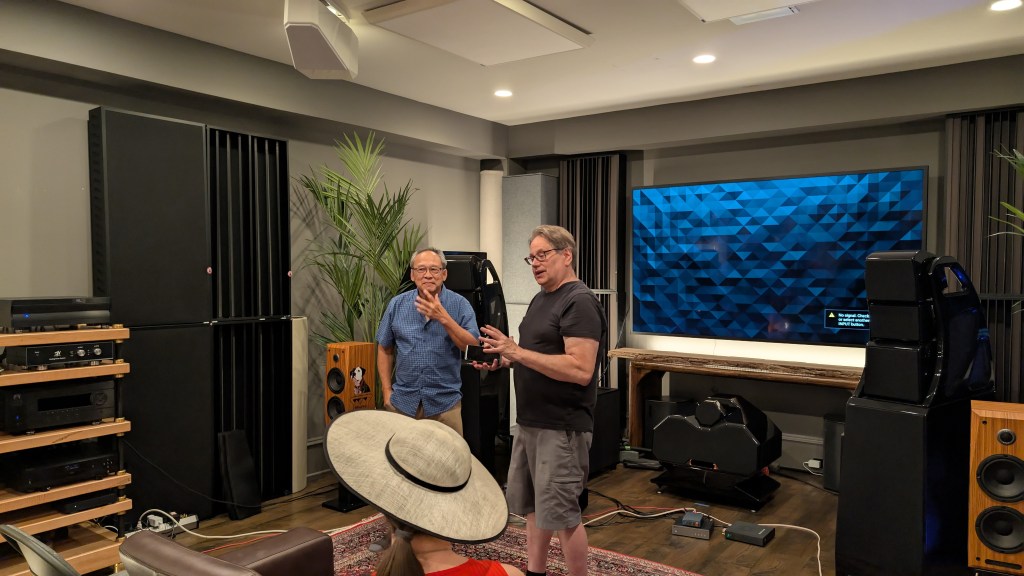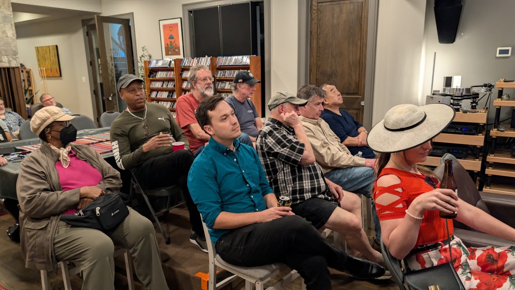 We assembled at Gerry’s once again for a presentation by Voo Audio and Voo DIY speakers. Vinh Vu has created a fascinating twist on DIY speakers by providing a fully built speaker cabinet in a choice of several finishes along with all the speaker parts needed to complete the speaker. A new pair of speakers can be completed in an afternoon.