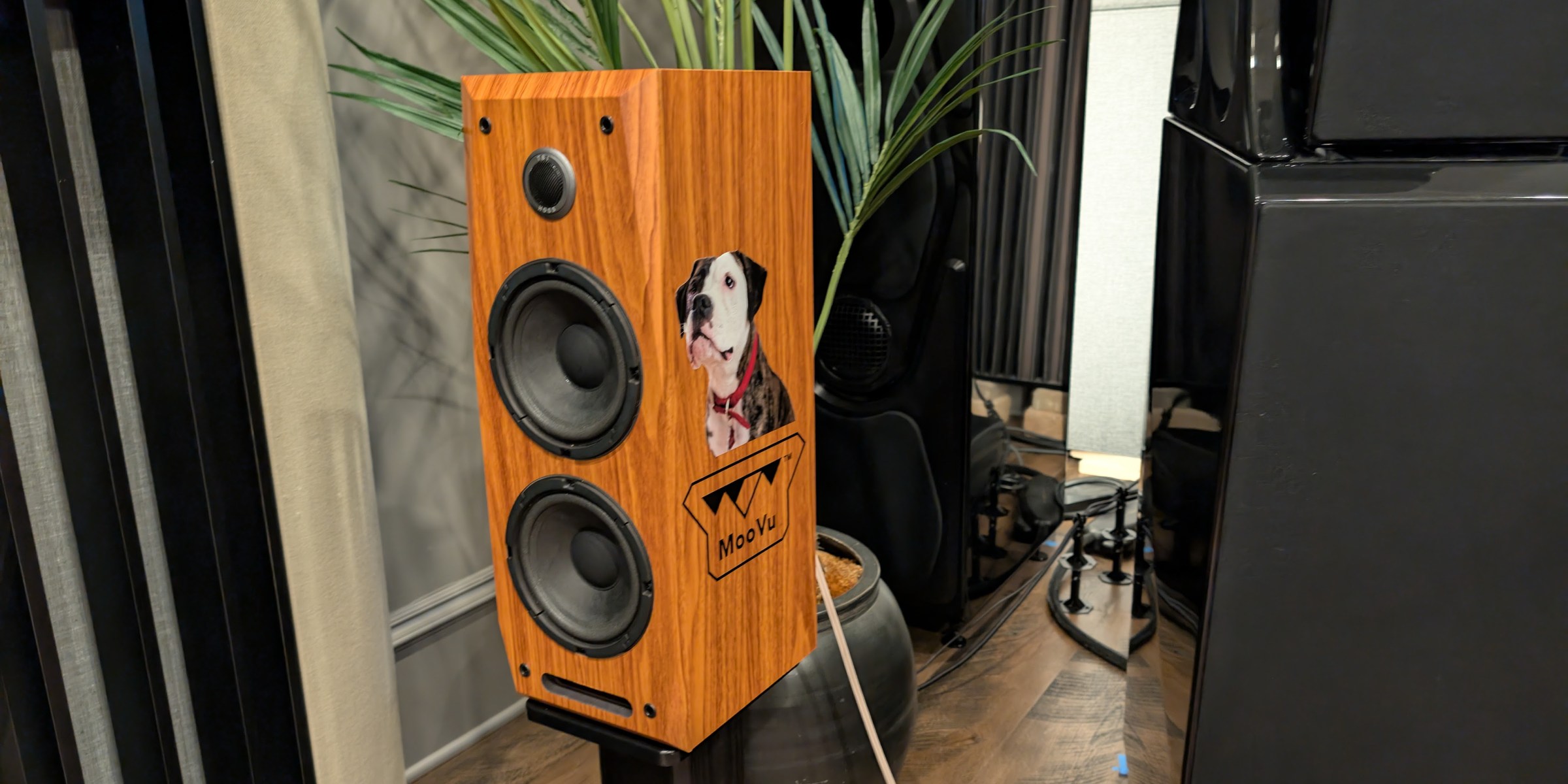 The speaker-component kit has a n introductory $499 MSRP. The MooVu Speaker Kit includes: four pre-wired, custom woofers with matching rubber seal gaskets, two pre-wired tweeters, two crossover assemblies, OFC copper wire, crossover mounting screws, wire nuts, and assembly instructions. “Typical build time is two hours per cabinet,” Vu noted. Gingko offers one-year against manufacturing defects for speaker kit from Gingko Audio. Cabinets warranty provided directly by Iwistao. Basically, the MooVu speaker pair kit is comparable to a $2,000 retail speaker pair, Vu emphasized.