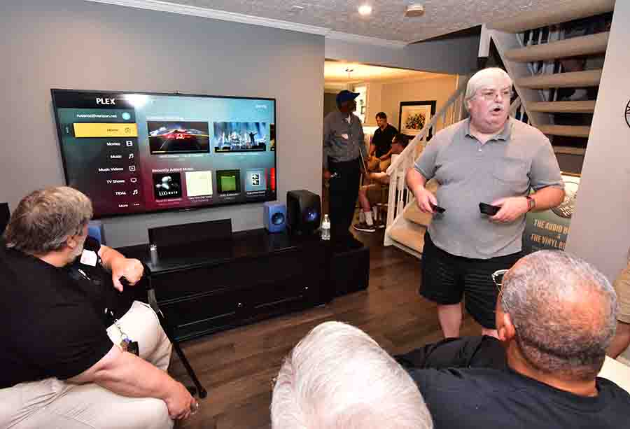 We had three separate demonstrations. In the front Home Theater room with Chris Barker at the helm showing off a media management application called Plex that organizes your video and audio files. Chris said it was “Roon” for video. As an added plus Chris was managing video files from his server 20 miles away and watching a movie streaming across the internet.
