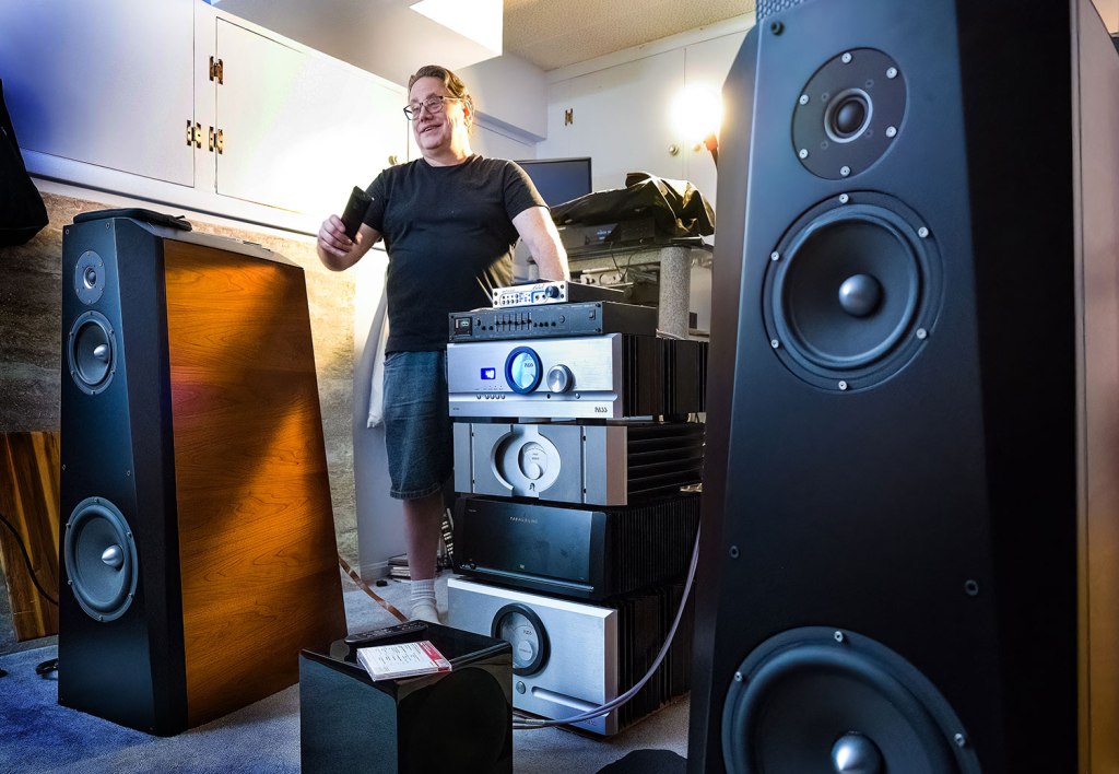 Nelson Pass only made three speaker models in the company’s 30-year history, including the infamous Rushmore, which still fetch $40,000 per pair on the used market. John has decided to oblige the inquiring members with a full-system Pass demo, including the SR-2’s (Son of Rushmore number two), the mammoth stereo X350.8 and an XP-10 preamp. The XA350.8 is a current model; the XP-10 preamp is the pre section in the INT-60 integrated but sounds fine. The SR-2’s are circa 2012-2015. These bad boys were custom all the way. The speaker featured custom manufactured tweeter, midrange, woofer, crossover, and a beautiful, hand-built, hardwood cabinet (165 pounds). They sold for $20,000 a pair at the end of their run!