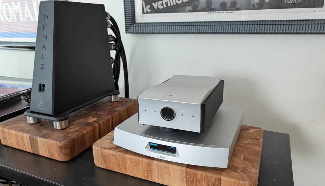 We gathered at Ron’s for a demonstration of the current equipment lineup from Mola Mola. Listening session featured the upgraded, Mola-Mola Kula ($16,790) integrated 200-watt, N-Core based amplifier; the well-reviewed Tambaqui DAC ($13,500); and the newly upgraded Lupe phono preamp ($9,850). The DAG playback system includes Totem Acoustic Metal V2 reference speakers and a Kronos Sparta turntable with Sonic Labs Signature Gold cartridge. That system showcased the Mola-Mola gear, plus a pair of MartinLogan 15s (Renaissance) electrostatic speakers, Lumin D3 Hi-Res streamer/local file player and Goldnote Pianosa TT/Goldnote Donatello Gold MC cartridge… Read More
