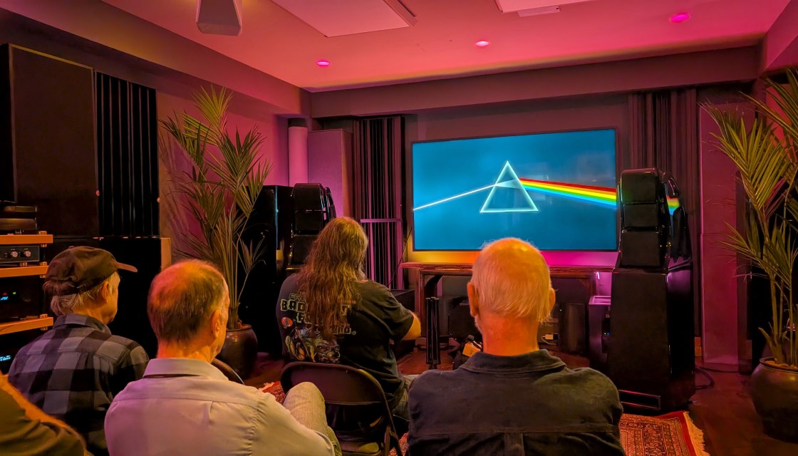 In our ongoing series of listening to surround sound renderings of revered recordings, we assembled at Gerry’s for a listen to the most recent Atmos mix of Pink Floyd’s Dark Side of the Moon. As always the raffle was the high point of the meeting.